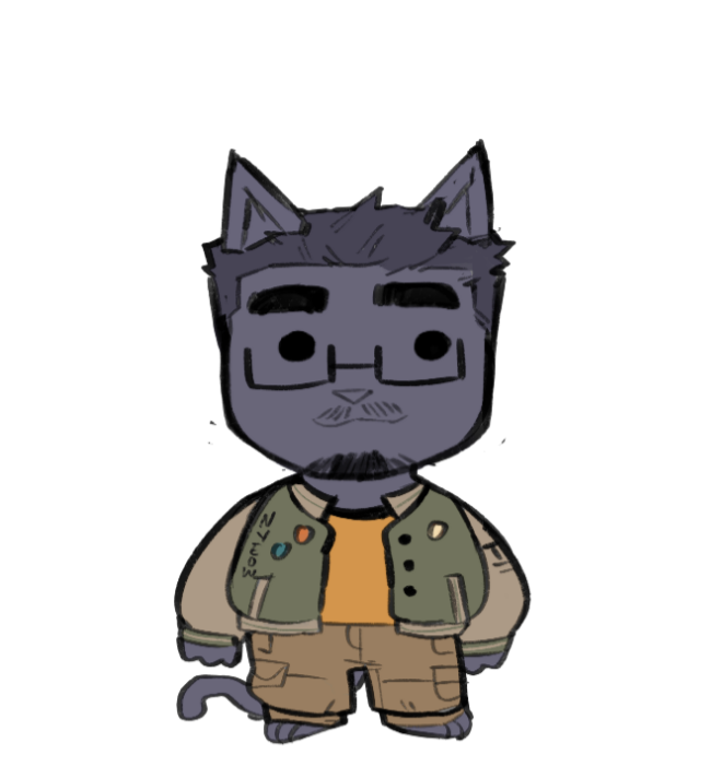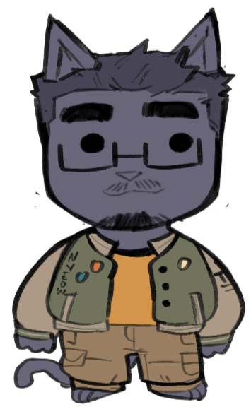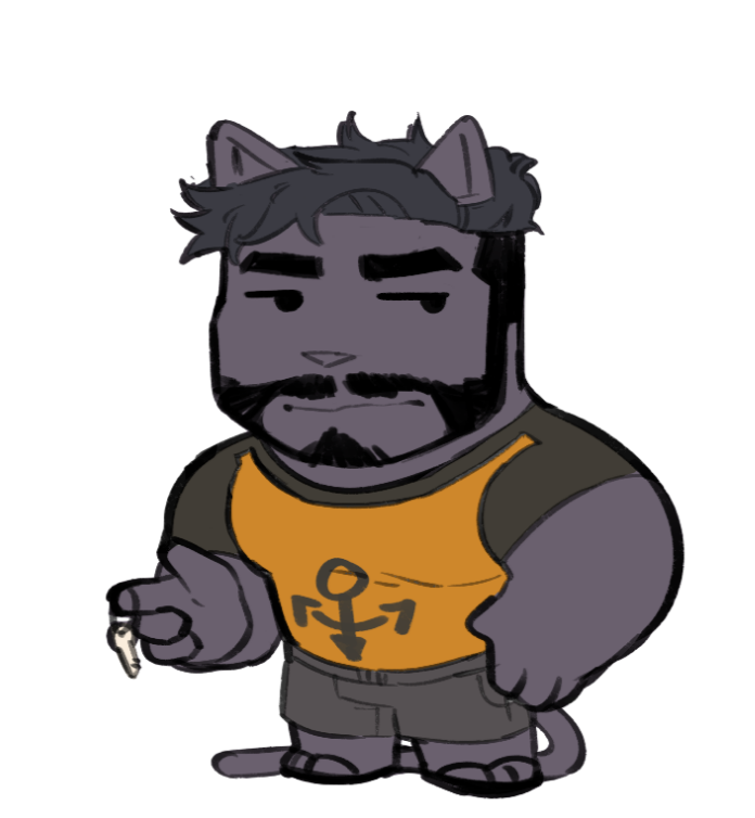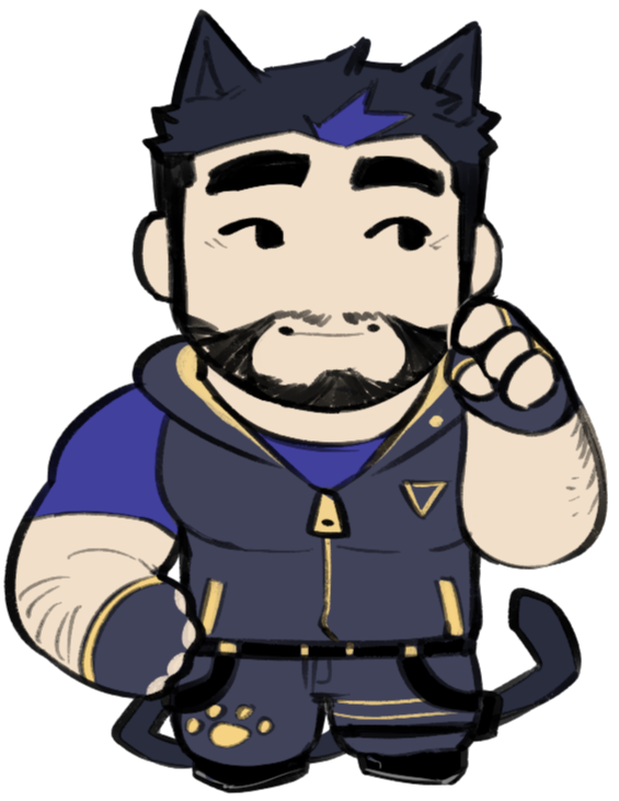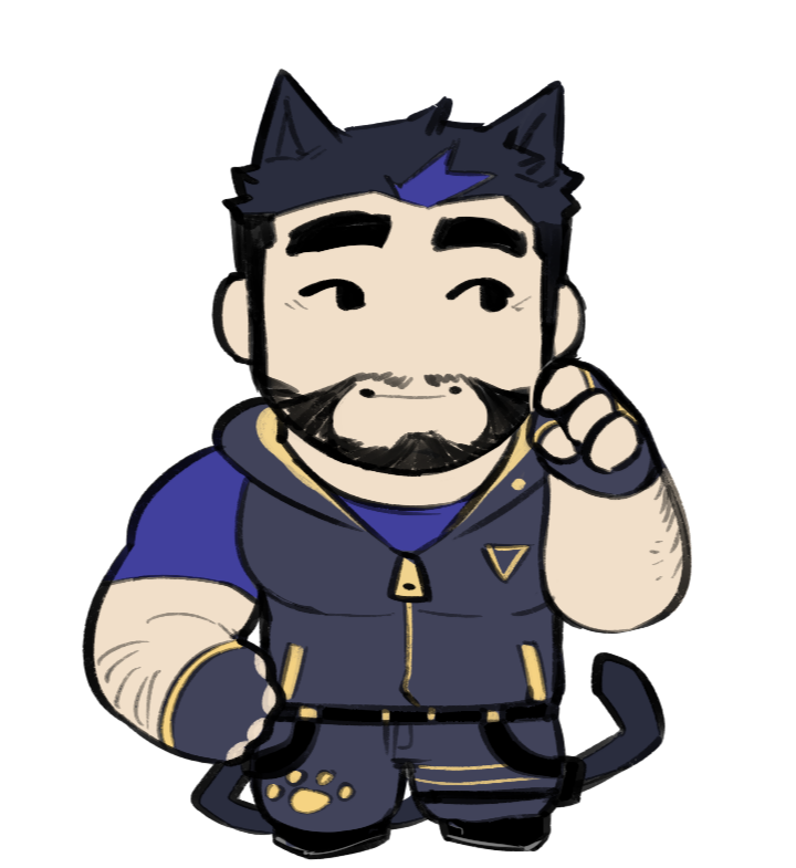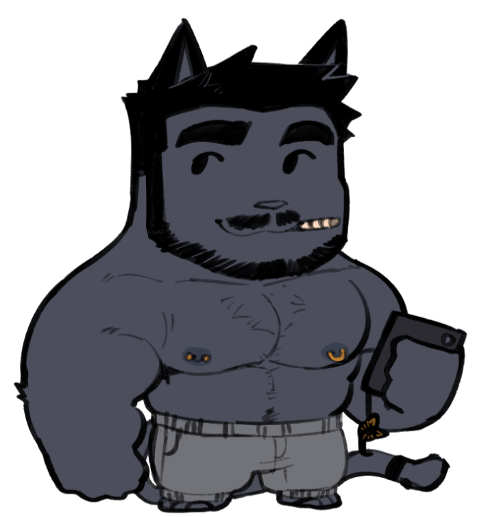SummaryKojiko is a large midnight cat, sort of a mix with a panther(?) He's a delivery man and trucker, usually delivers goods for Cole's convinience store and Gale's ingredients. He substitutes in Cole's convinience store as a cashier, but he refuses to wear a shirt or uniform, he feels like its strangling him due to how large his body is. He takes interest on hangin around with Yancy when he's on break, he's quite a large needy cat. Kojiko would just slack and scroll around social media, play mobile games and eat all the convinience store snacks all he wants