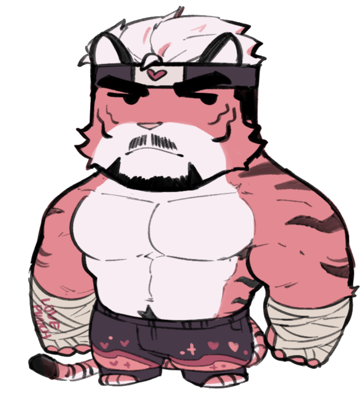 SummaryDani is from my Dancers of Death series! he canonically lives in the Cat Apartment along with the cats I wroteDani is a hero assigned to the Rescue Team with Meon, a team focused of saving civillians rather than fighting villains, he uses wind whisperer's emblem tied to his headband front, he used to wear the Rescue Team's uniform, he prefers punching without anything on his topwear, so he's stuck shirtless. His title name is Love Punch! Meon came up with that name for him because Dani boxes a lot, and adding the word 'love' was to normalize how Dani consciously feels about his pink color being less intimidating, that's also why he looks so grumpy all the time.Dani went to the same University together with Meon in the hero course, they were quite the situationship in that time frame. The pink tiger confessed to the bluish black cat while he was drunk on a bed and fell asleep on top of Meon. The next day, Meon accepted Dani's feelings and appreciated all the love and effort Dani's been chancing on him. In return Meon gave him the same effort of love back to Dani and became his man. He calls Meon, "Meo"