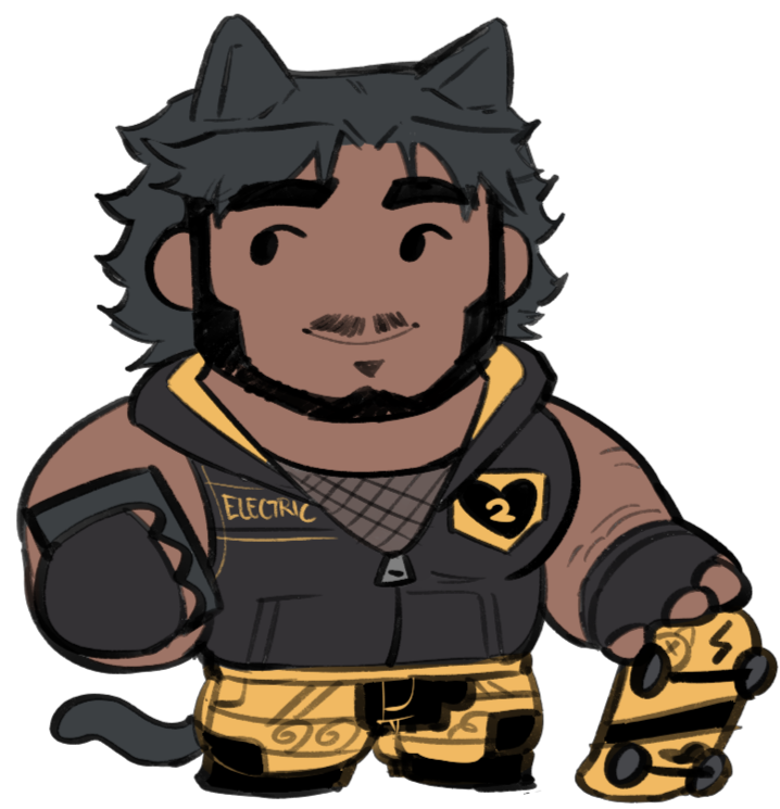 SummaryGav lives on the 1st floof of Cat Apartment along with Cole and Kojiko. He works for Gale mainly a Janitor and maintenance around his facility, he also works at Cole's Cat Mart in his free time. Gav is a skater and a dancer! he'd entertain a lot of people around the park and Gale's beach. Gav is an upbeat type of guy, he'd smile for a sunny day, just how yellow he is! Yancy designed his sweatpants and sleeveless jacket, he's also quite the prankster on Cole.